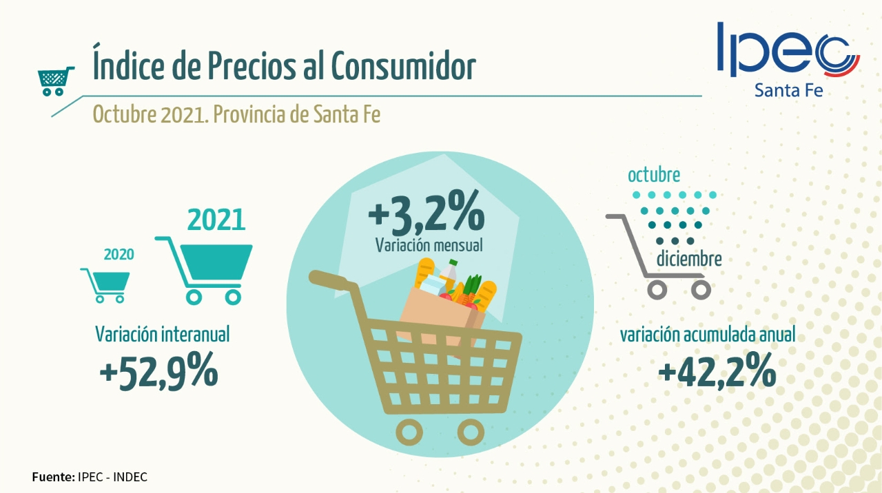 El Instituto Provincial de Estadística y Censos publicó el informe con el Índice de Precios al Consumidor correspondiente a octubre de 2021, y estableció que la inflación de el último mes en Santa Fe fue del 3,2%.