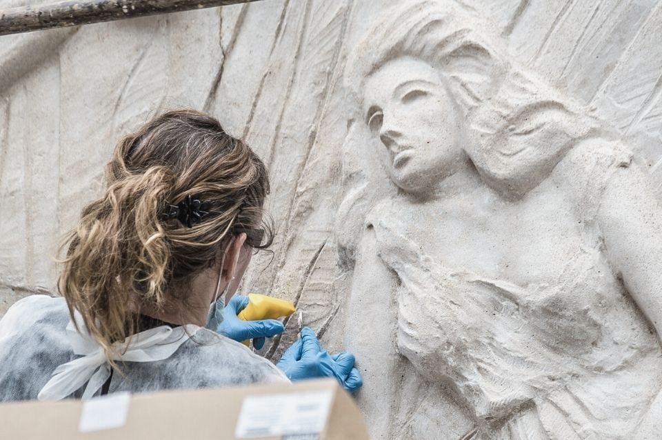 En el marco de los 112 años de la nacionalización de la Escuela Industrial Superior, la restauración del bajorrelieve que hizo Miguel Ángel Schiaffino en 1950, ingresa en su última etapa.