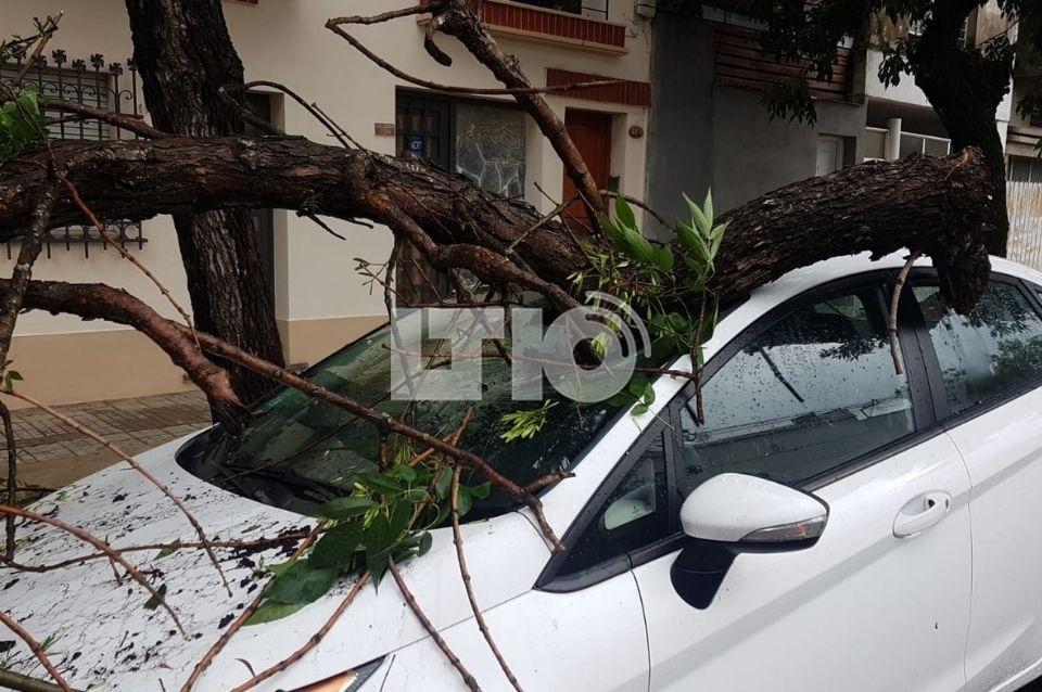 Durante la madrugada de este jueves, en el medio de la lluvia, un árbol cayó arriba de un Ford Fiesta Blanco que estaba estacionado en calle Balcarce 1134.