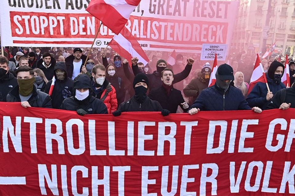 Pese a la nueva amenaza, decenas de miles protestaron en Austria contra la vacunación obligatoria en el país, el primero de la UE en aplicar esa medida.