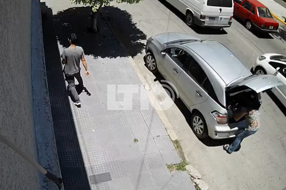 El ladrón entró a la casa y pudo hacerse con el celular de la mujer que estaba con el baúl del auto abierto y lleno de compras aún. El mal viviente no sólo fue captado por las cámaras de seguridad sino que también fue visto por la víctima. La misma alertó a otro vecino que vio pasar al delincuente corriendo y lo detuvo hasta la llegada de los oficiales de la policía.