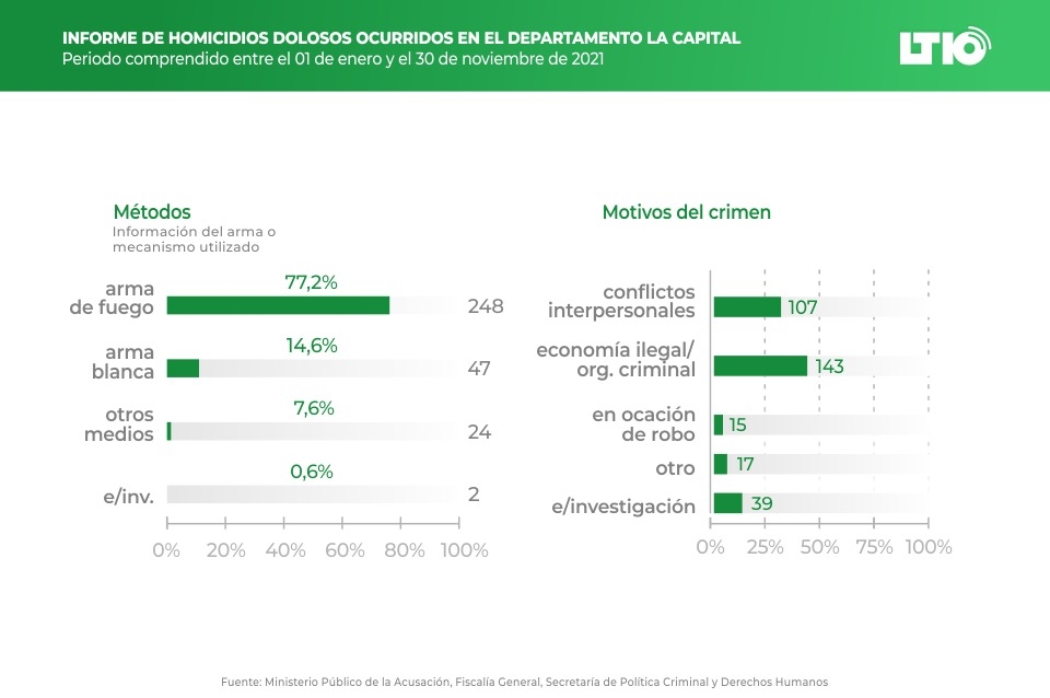 En estos cuadros se describe el arma utilizada para cometer el homicidio y los aparentes móviles para concretarlo.