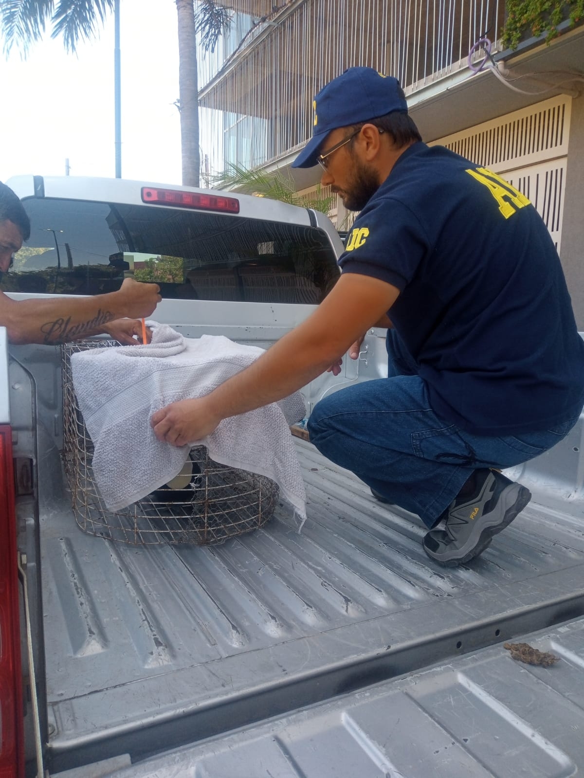 Acto seguido, los oficiales desplegaron un operativo de rescate que dio con quienes tenían el ave encerrado dentro de una jaula para su resguardo.