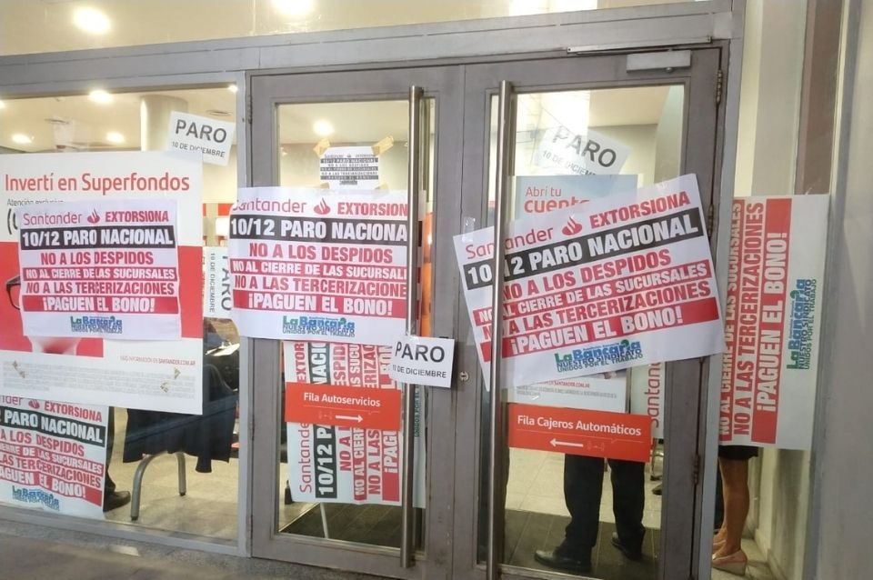 Este viernes 10 de diciembre, se desarrolla a nivel país una medida de fuerza que afecta a todas las sucursales del Banco Santander, incluidas las ubicadas en Santa Fe.