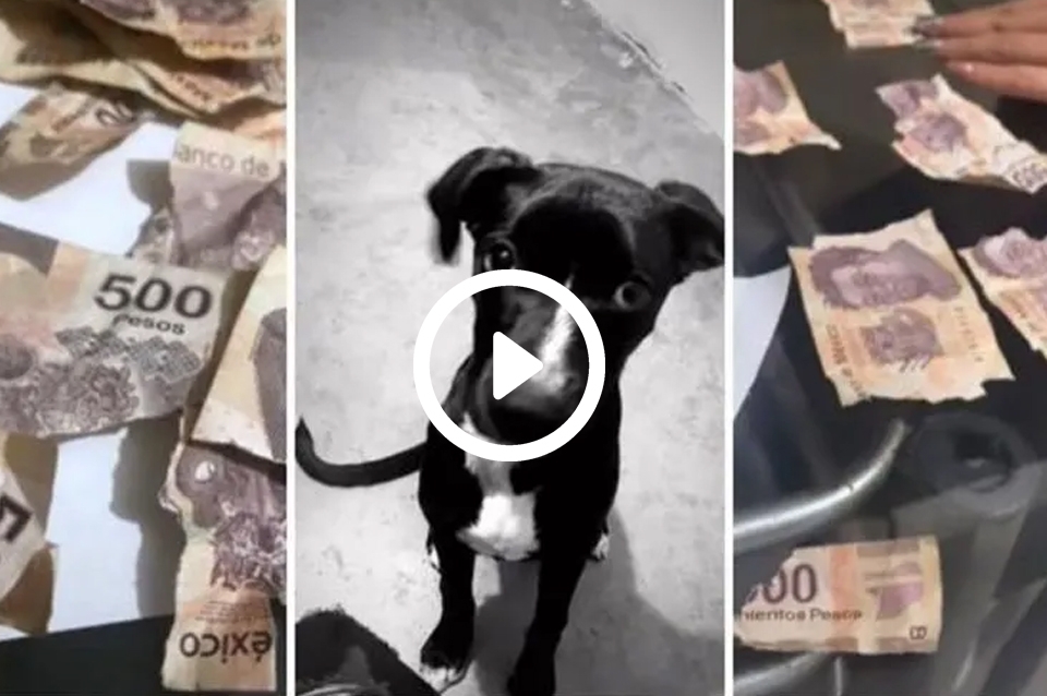 Una desoladora imagen donde todos sus billetes de 500 pesos mexicanos, unos 20 dólares cada uno, han sido partidos, rotos y extendidos por todas las superficies. La joven, además, enfoca a sus mascotas mirándola con cara de arrepentimiento.