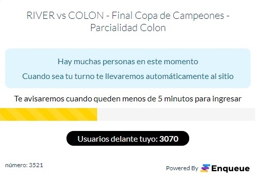 Sin embargo, hubo demoras en el inicio a través de la plataforma ventas.autoentrada.com. Después en la redes, la plataforma pidió disculplas y expuso que la habilitación sería a las 16.30. Ahora sí los hinchas pueden ingresar.