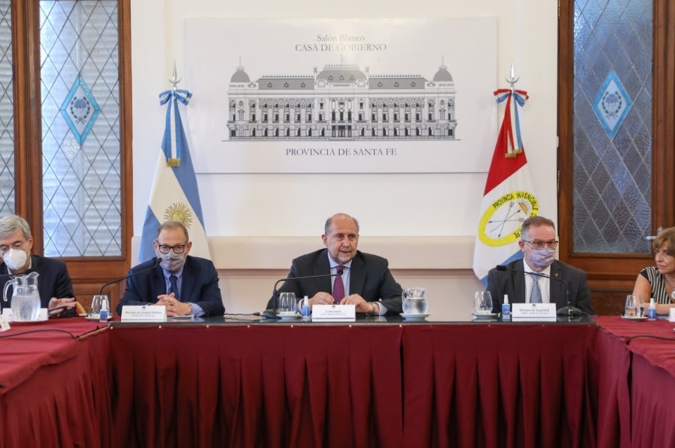 El gobernador Omar Perotti se reunió este lunes con legisladores nacionales en el Salón Blanco de Casa de Gobierno. Luego del encuentro, el ministro de Gestión Pública, Marcos Corach, precisó que “tanto el gobernador, como el ministro de Seguridad (Jorge Lagna), expresaron las dificultades con las que nos encontramos; así como el nivel de inversión y lo previsto para los próximos meses en términos de seguridad”.
