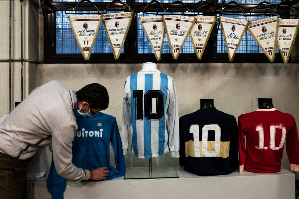 Así también surgen los cuadros de Maradona, que oscilan sus precios entre los US$200 y los US$500. Las zapatillas y los botines que usó el 10, parten de una base de los U$S100 y su ropa va entre los U$S50 y los U$S300.