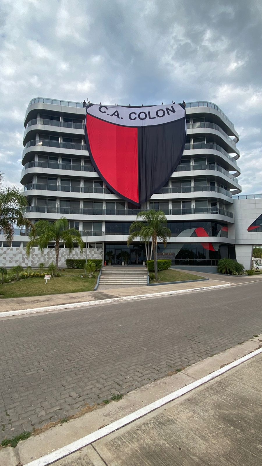 Claramente, su presencia no pasó desapercibida en la ciudad que alberga al Mundial de MotoGP, por lo que tiene lugares muy imponentes. En este sentido, se colgó una bandera que ocupa gran parte de la facha. Una forma de ir poniéndole calor a la previa de un duelo que puede ser histórico para el Sabalero.