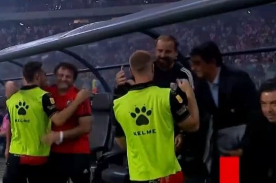 Nahuel Gallardo saludó a su padre antes del arranque del partido entre River y Colón, en Santiago del Estero, por el Trofeo de Campeones. El pase del hijo del director técnico millonario pertenece al conjunto de Núñez, pero está a préstamo en el Sabalero.