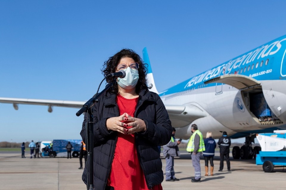 Antes de partir en el Hércules con destino a Bolivia, la ministra recordó que "la Argentina ha recibido 7 millones de dosis de donación", lo que permitió al Gobierno "acelerar la campaña y estar en el punto de avance" en el que está en la actualidad.