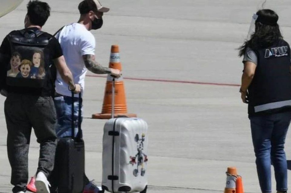 Messi descendió del avión por una de sus escalinata con una mochila en su espalda, una pequeña valija en su mano derecha, un mate sujeto con por la otra y un termo bajo con la axila del brazo izquierdo, según fue retratado por la cuenta especializada Saar Ari Ros en Twitter.