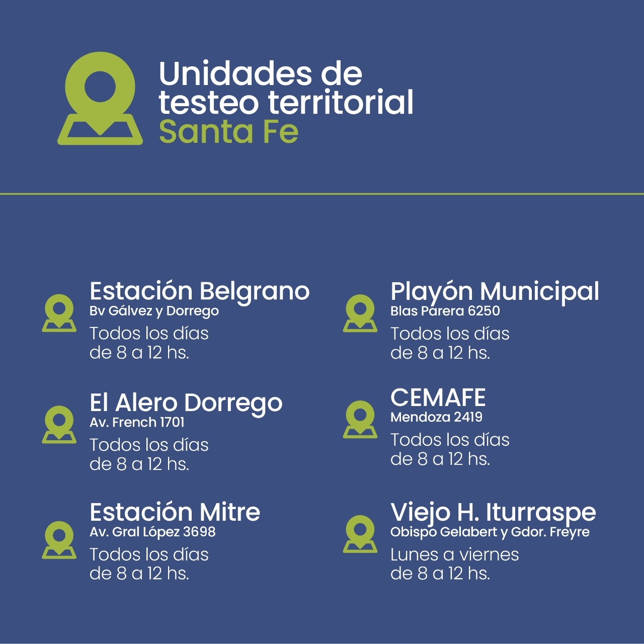En ese sentido, este 24 y 31 de diciembre, en la ciudad de Santa Fe, se realizarán los testeos entre las 8 y las 10 hs mientras que el sábado 25 y 1 de enero, permanecerán cerrados para retomar las actividades los domingos posteriores, en el horario habitual de 8 a 12 hs.