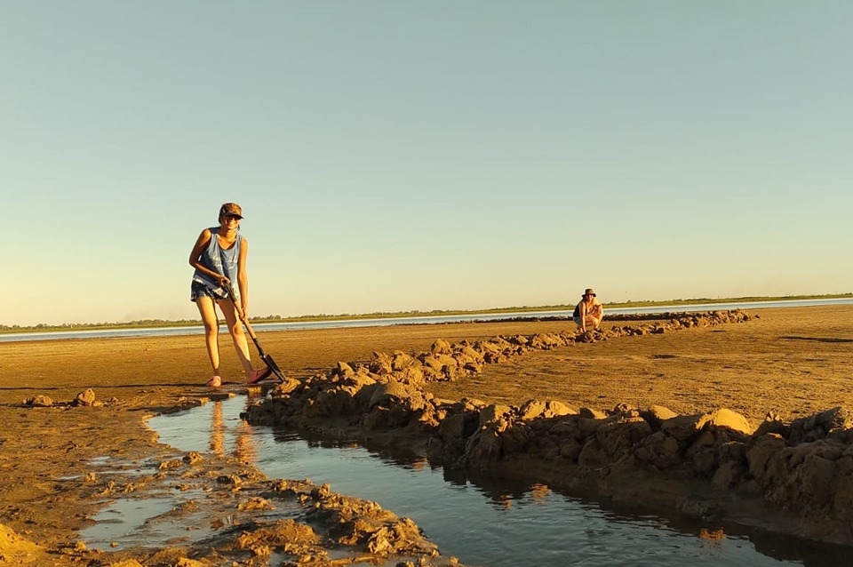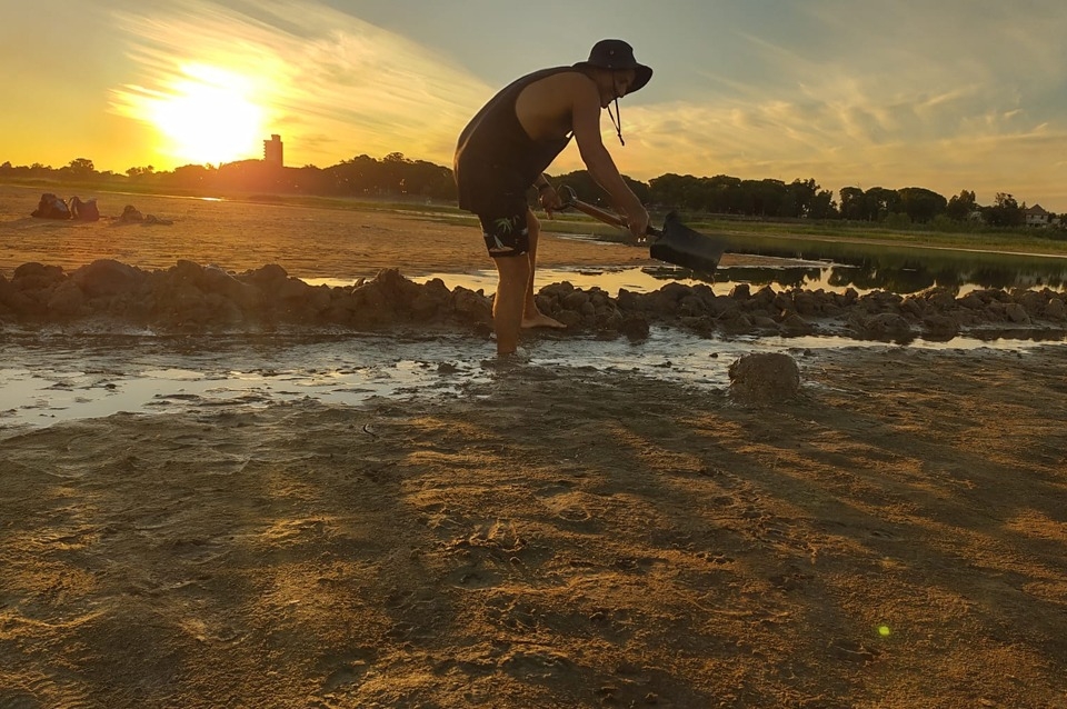Este fin de semana, un grupo de santafesinos tomaron la iniciativa y con una pala abrieron un canal sobre el lecho de la Laguna Setúbal para ayudar a varias especies que quedaron atrapadas en una pequeña laguna producto de la bajante.