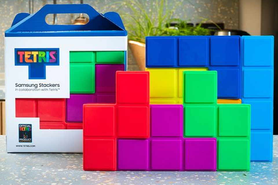 Samsung y The Tetris Company presentaron de forma conjunta una exclusiva línea de tuppers con un llamativo diseño inspirado en las piezas de puzzle del icónico videojuego. De esta forma, el set de recipientes emula las siete formas y rec de los reconocidos bloques conocidos como tetrominós, disponibles en celeste, amarillo, púrpura, verde, azul, rojo y naranja.