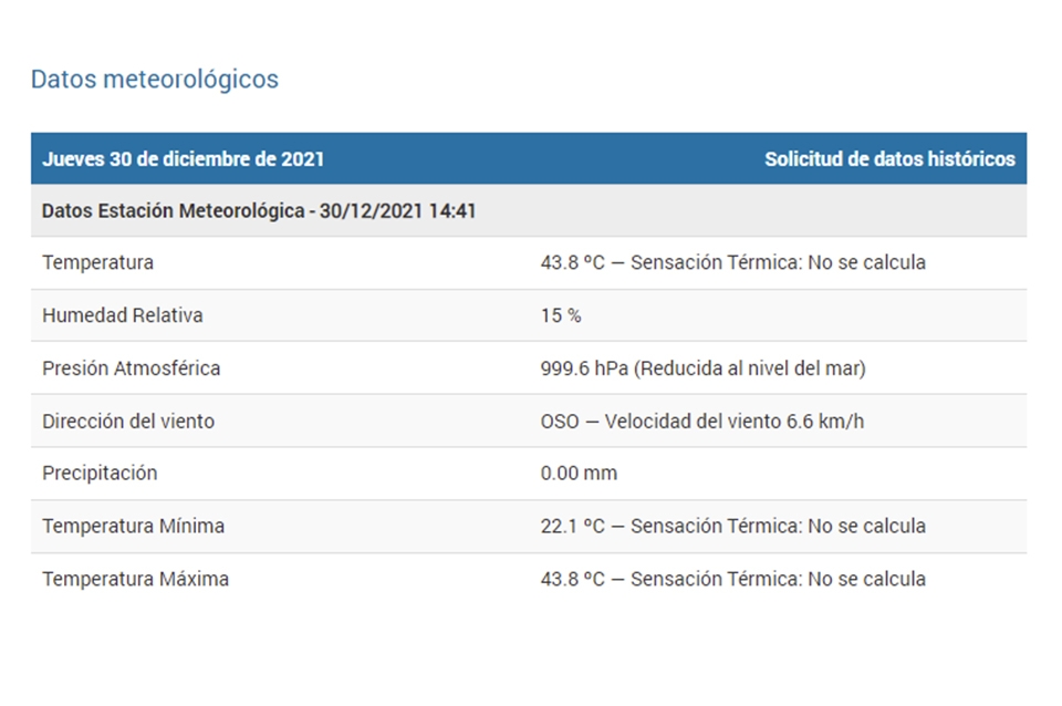 Las condiciones climáticas en la región comenzaron a inestabilizarse. Se producen fuertes ráfagas de viento. La temperatura rozó los 44º C a las 14.41.