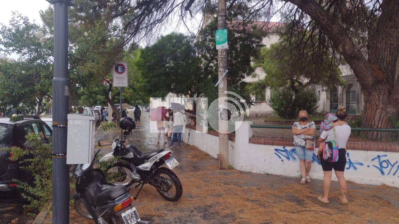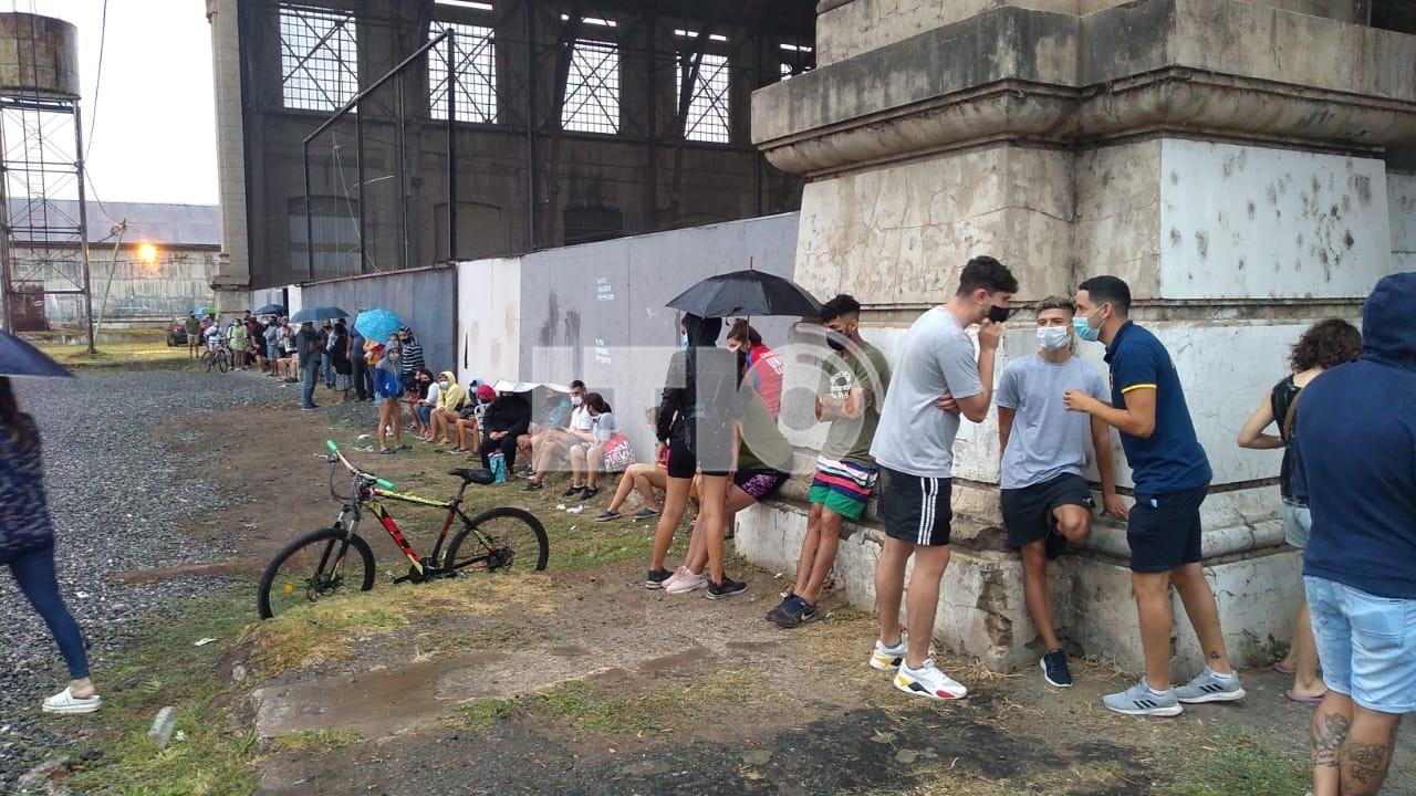 Incluso bajo la llovizna, muchos santafesinos se resguardan bajo los techos de los andenes. El primero de los que esperan para testearse lo hizo a las 4 de la mañana, cuando las puertas abren recien a las 8hs.