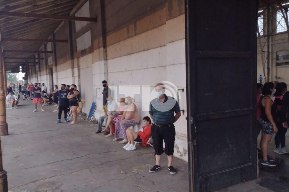 En el caso de la Estación Belgano, cuyo operativo se mudó al interior, en la zona de los andenes ante las condiciones climáticas actuales, la fila de unos 300 metros va desde calle Avellaneda para el norte y da toda la vuelta hasta lleegar a Boulevard.