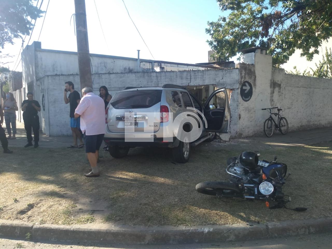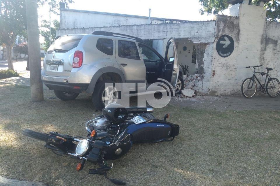 Según pudo averiguar el Móvil de LT10, la camioneta tipo Duster no vio a la motocicleta ya que el trailer de un camión estacionado le tapó la visibilidad y terminó impactando con la misma, luego se subió a la vereda e incrustó contra la pared de una casa que se encuentra en la esquina.