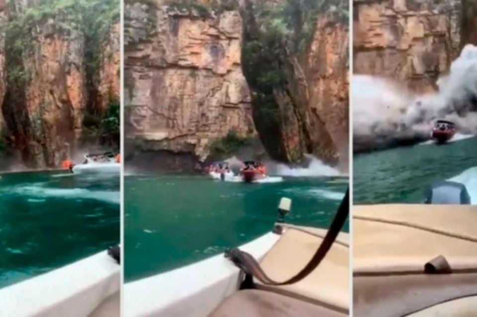 El sábado al mediodía, un gran fragmento rocoso se desprendió de un barranco y cayó, perpendicular, encima de cuatro lanchas que paseaban por el lago, una región turística de Minas Gerais.