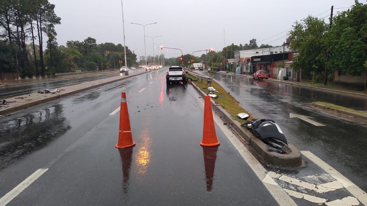 La lluvia baja la visibilidad y vuelve muy resbaladizas las carpetas asfálticas. Si a esto se le suman altas velocidades y maniobras bruscas, se deja todo servido para accidentes como los que estamos presenciando. La madrugada de este martes, cerca de las 3 de la mañana, un Toyota Ethios Cross Gris que circulaba por la Ruta Provincial número 1 chocó contra el guardarrail que divide la ruta de la colectora, en circunstancias que aún son materia de investigación.