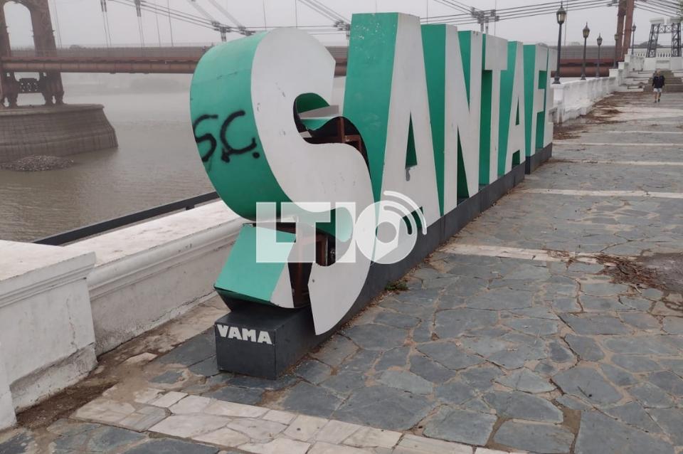 Este miércoles, la ciudad amaneció con uno de sus íconos vandalizados: se trata del cartel de Santa Fe emplazado en la base del Puente Colgante, cuya letra S fue destruida y escrita con aerosol.