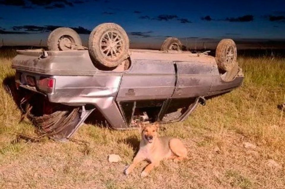 Un hombre volcó y su perro se quedó con él hasta que lo rescataron, incluso esperó en e lugar del accidente luego de que fuera llevado al hospital. las imágenes se viralizaron en redes sociales.