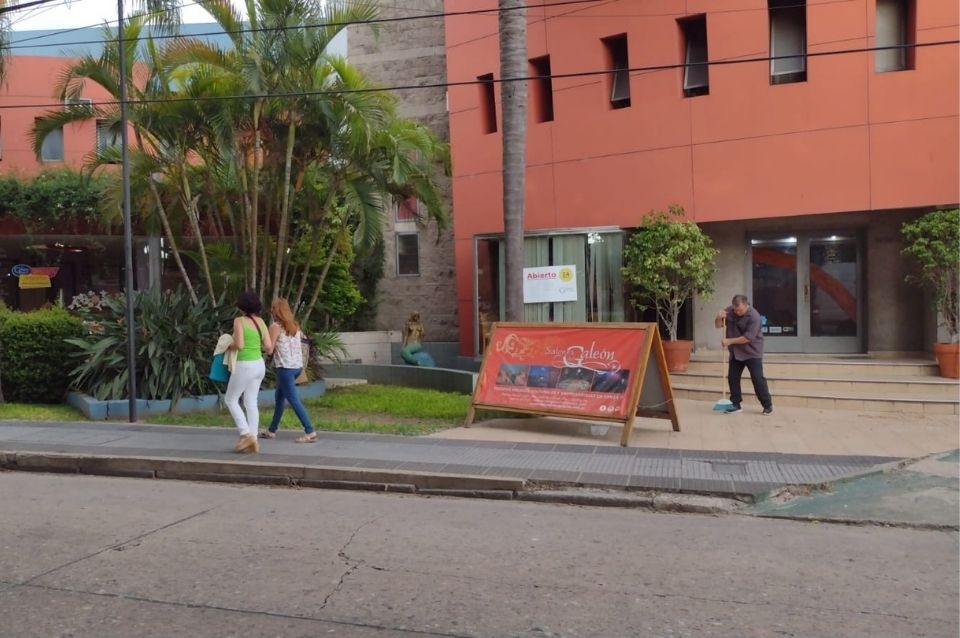En ese momento es observado por el empleado del hotel, quien da aviso a la central 911, dando con el mismo en inmediaciones de la plaza Alberdi. Este, al notar la presencia policial descartó la bolsa de consorcio negra con las bebidas sustraídas y un cable puente para baterías.