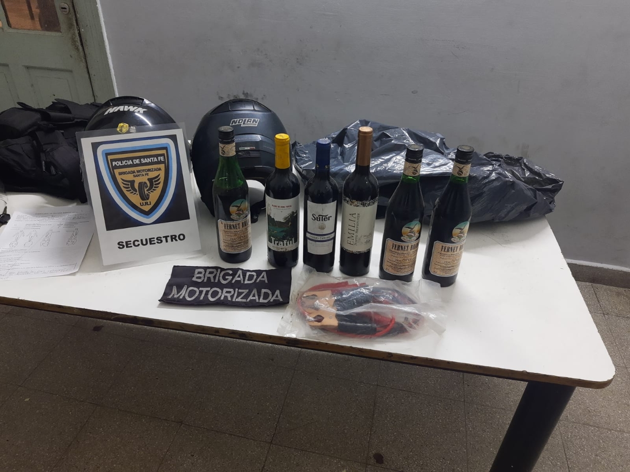 El hombre escapaba con una bolso de consorcio completa de distintos tipos de bebidas.