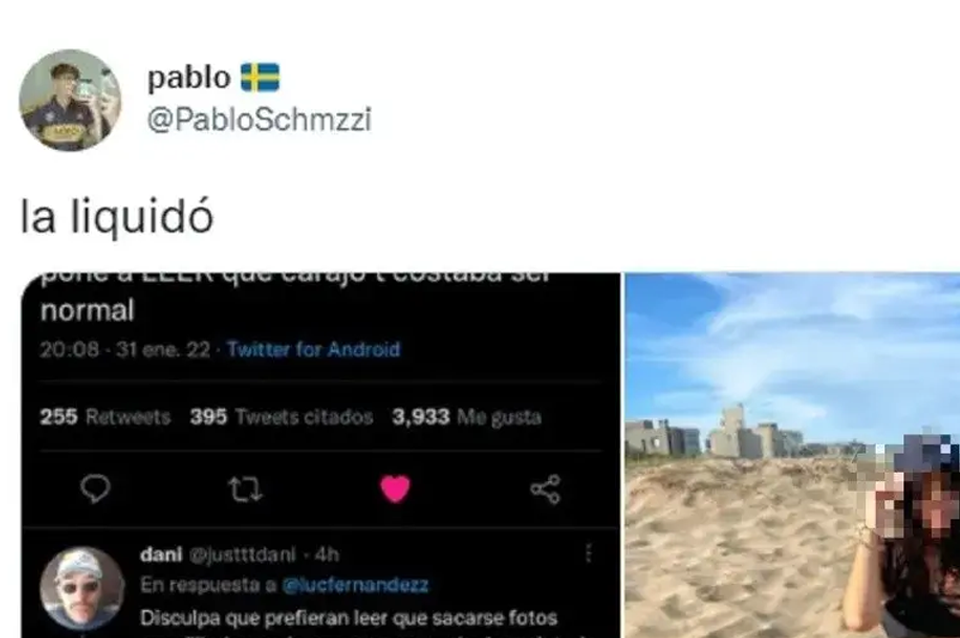 "Disculpá que prefieran leer que sacarse fotos arrodilladas en la arena como cualquier pelo... Seguramente esta mina debe tener una foto así en sus redes sociales", le comentó alguien inmediatamente.