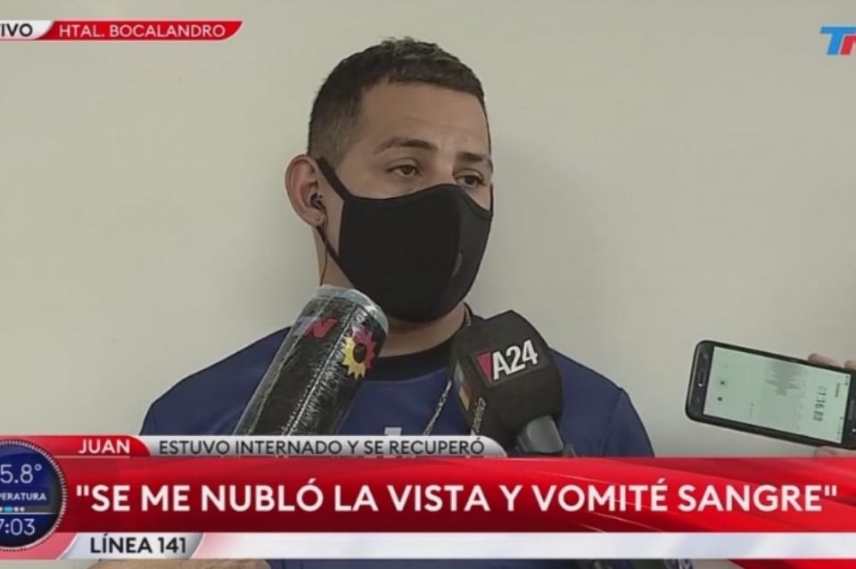 "Estoy vivo a pesar de lo que me pasó. Es feo que pase una cosa así, estuve con vómitos de sangre. El martes estaba con los chicos y después de consumir me agarró dolor de panza, de cabeza, los vómitos, se me nubló la vista y terminé al otro día en el hospital", contó el joven llamado Juan en declaraciones a la prensa.