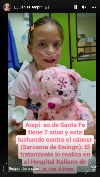 Se sabe que Lionel Messi es un gigante tanto adentro como afuera de la cancha, y en este marco, este martes se hizo viral un video que le envió a Ampi, una niña santafesina de 7 años que sufre cáncer infantil. La pequeña lucha contra un Sarcoma de Ewingn en el hospital Italiano. No suelta nunca su oso rosado y tiene un ídolo: Lionel Messi