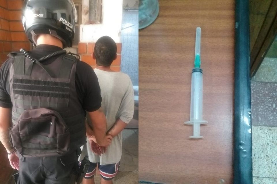 Una vez en el lugar, los uniformados interceptaron al sospechoso y tomaron conocimiento que el mismo, bajo amenazas con la jeringa, intentó sustraerle las pertenencias a un hombre de 80 años.