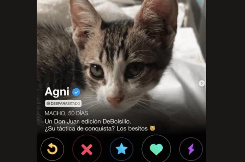 Dante, creador del proyecto, ideó el “Gatitinder”: hizo el perfil de todos sus animales con un estilo similar al de la app de citas, para que varias familias puedan conocerlos.