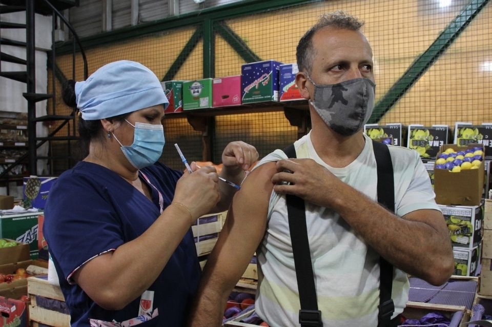 El Ministerio de Salud de la provincia realizó este jueves un operativo de vacunación contra el Coronavirus, aplicando terceras dosis a trabajadores y trabajadoras del Mercado Abastecedor de Frutas, Verduras y Hortalizas de la ciudad de Santa Fe.