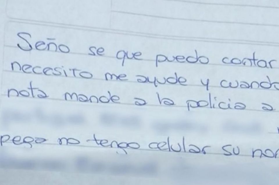 "Seño, sé que puedo contar con usted, necesito que me ayude y cuando lea esta nota, por favor mande a la policía a mi casa, mi pareja me pega y no tengo celular, su nombre es, (agrega el nombre de su agresor)", es la nota que escribió la víctima.