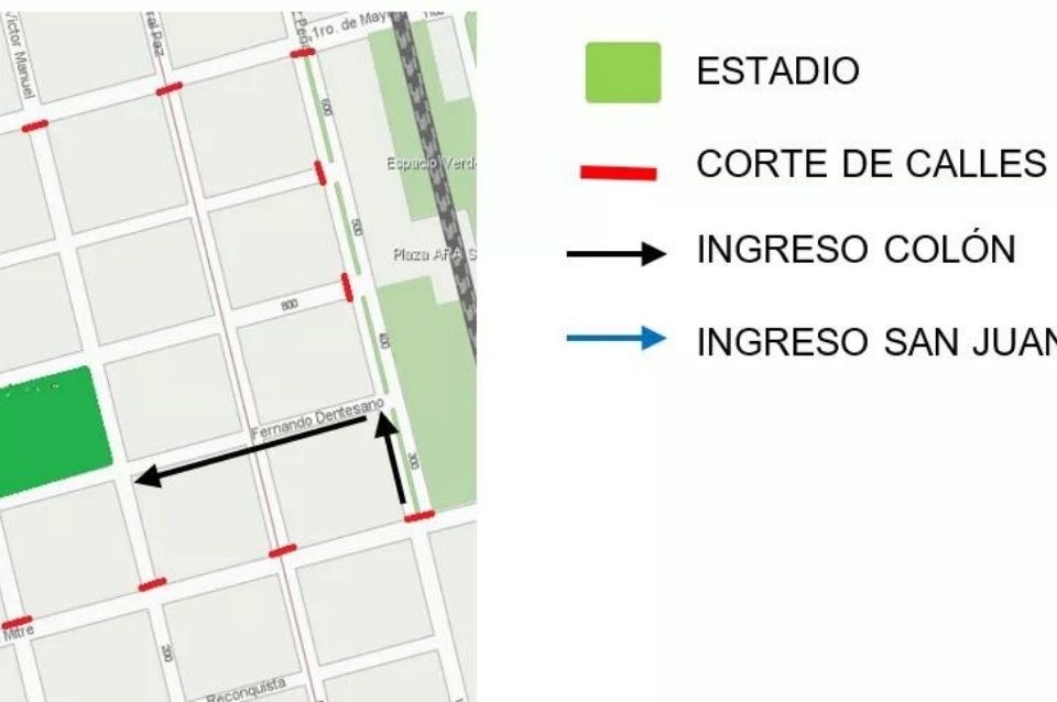 A su vez, se da a conocer que los simpatizantes del equipo sanjuanino harán su ingreso por la entrada de Urquiza y Primera Junta. En tanto, los simpatizantes del Club Atlético Colón, para ingresar, solo podrán hacerlo por Av. Roque Saénz Peña y luego por Dentesano hasta la llegada al estadio.