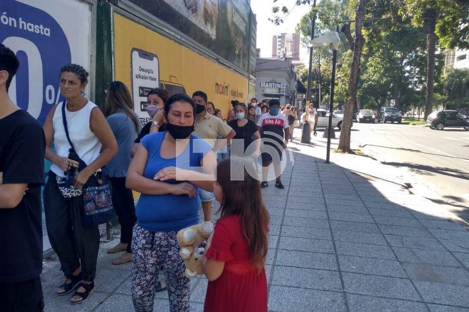 La fila de personas sobre Boulevard Gálvez ha llegado incluso a dar vuelta la cuadra hacia República de Siria.
