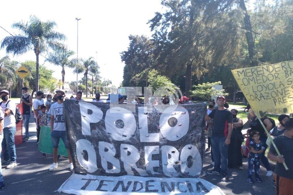 Movimientos sociales se manifiestan frente al Ministerio de Desarrollo Social, ubicado en Almirante Brown al 7.100, para exigir por más recursos y asistencia a los merenderos que funcionan en Santo Domingo Unido y Loyola Sur.