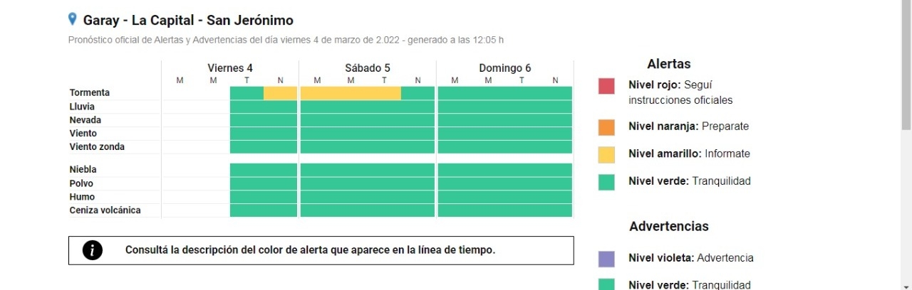 Por otro lado, el Servicio Meteorológico Nacional emitió un alerta por tormentas que afecta al departamento La Capital. El informe advierte que estas condiciones estarán presentes hasta la tarde del sábado.