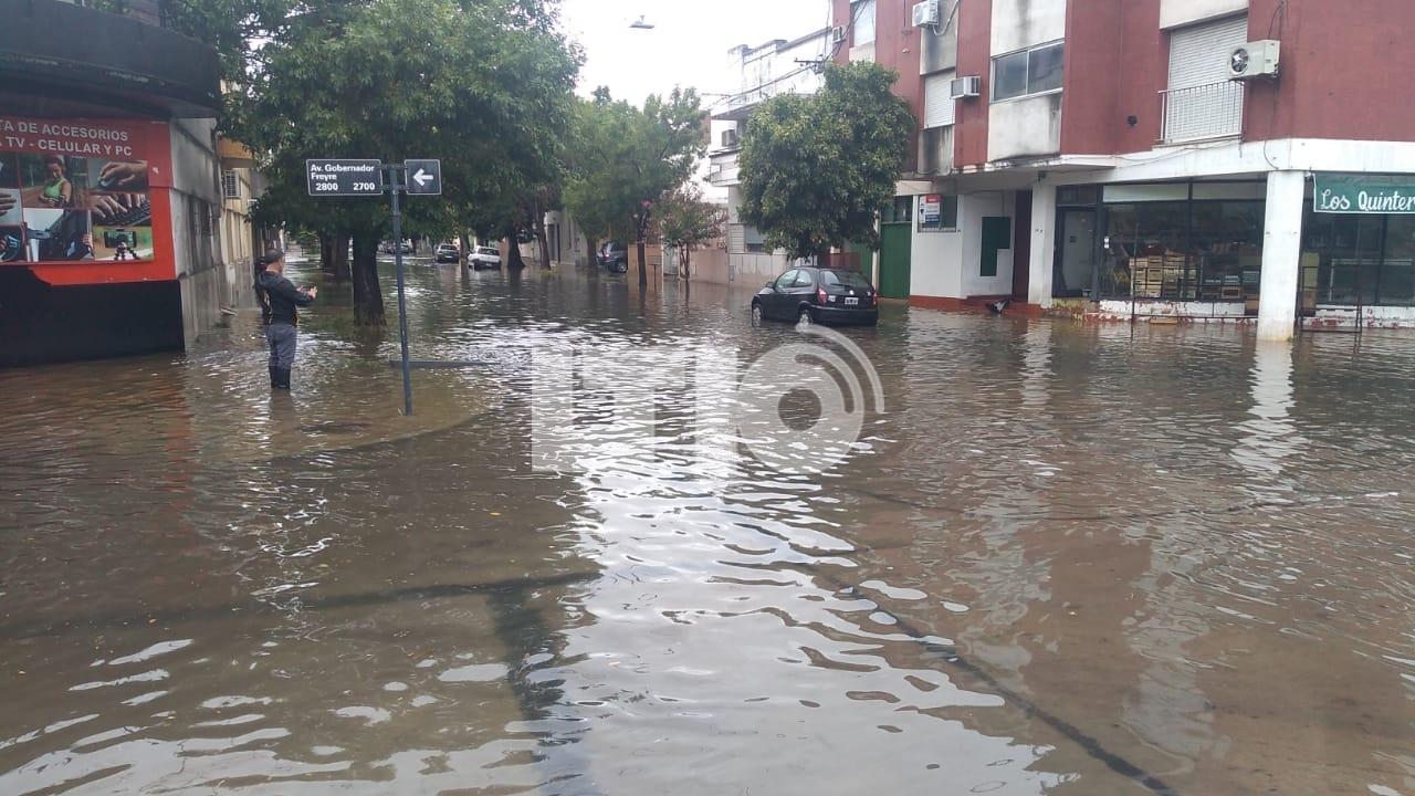 El Móvil de LT10 recorrió las calles y confirmó problemas en varios sectores de la ciudad por gran cantidad de agua acumulada en la bocacalles, como es el caso de la esquina de Catamarca y Avenida Freyre.