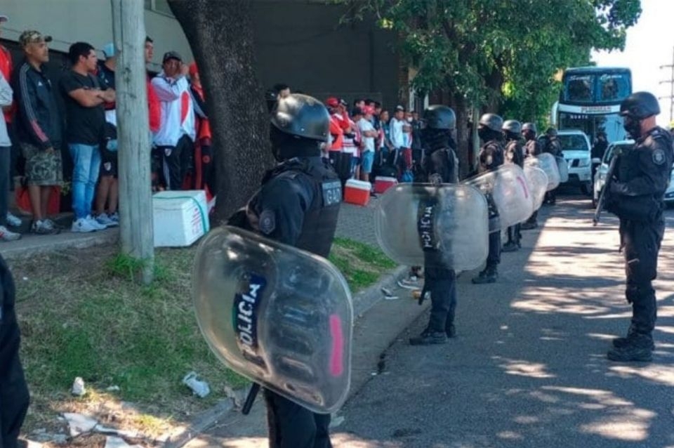 La Policía Bonaerense detuvo a tres micros de la barra oficial de River que se dirigía a Salta, donde mañana el Millonario enfrenta a Laferrere, y secuestraron armas, facas y mucha droga.