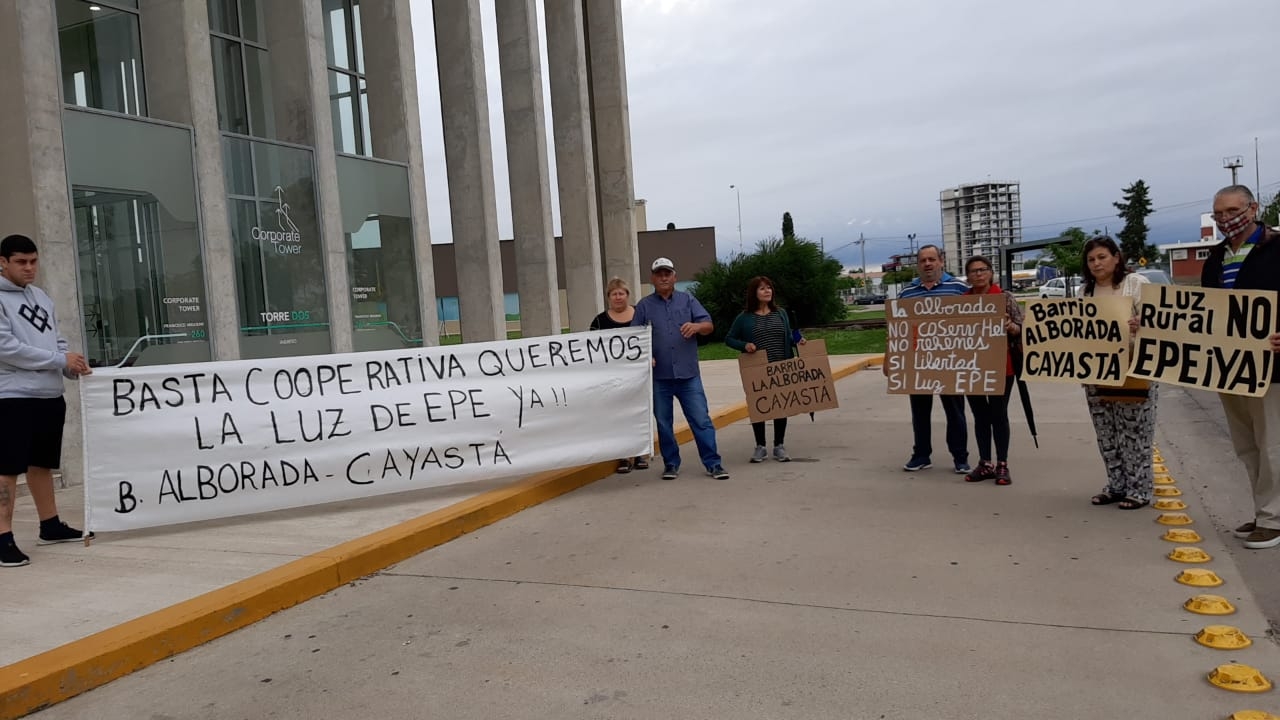 En la jornada de este miércoles vecinos de Cayastá, concretamente del barrio Costa Hermosa, se manifestaron en las instalaciones de la EPE para reclamar por los inconvenientes que se registran en la zona por el servicio de energía eléctrica.