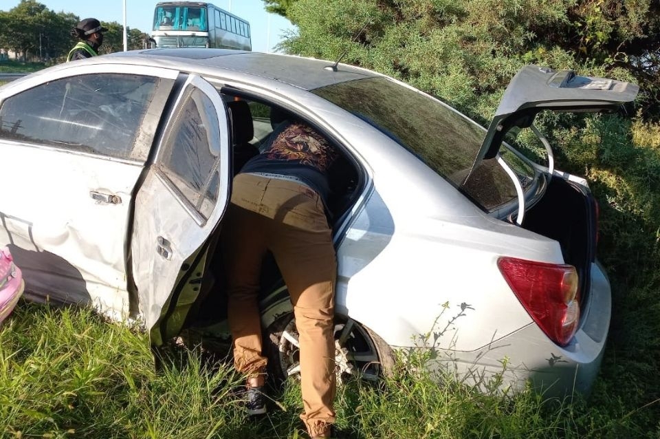 Allí, la mujer de 44 años trasladaba a sus dos hijos, de 8 y 6 años cuando fue encerrada por otro vehículo, despistó y terminó en el cantero central de la Autopista. En tanto, el otro vehículo continuó la marcha.