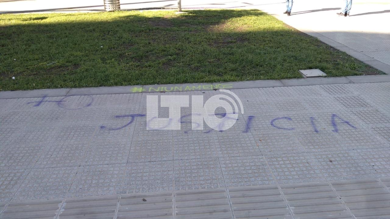 Esta vez, las labras que se escribieron tanto en paredes como piso son relacionadas a la Justicia a la violencia de género.