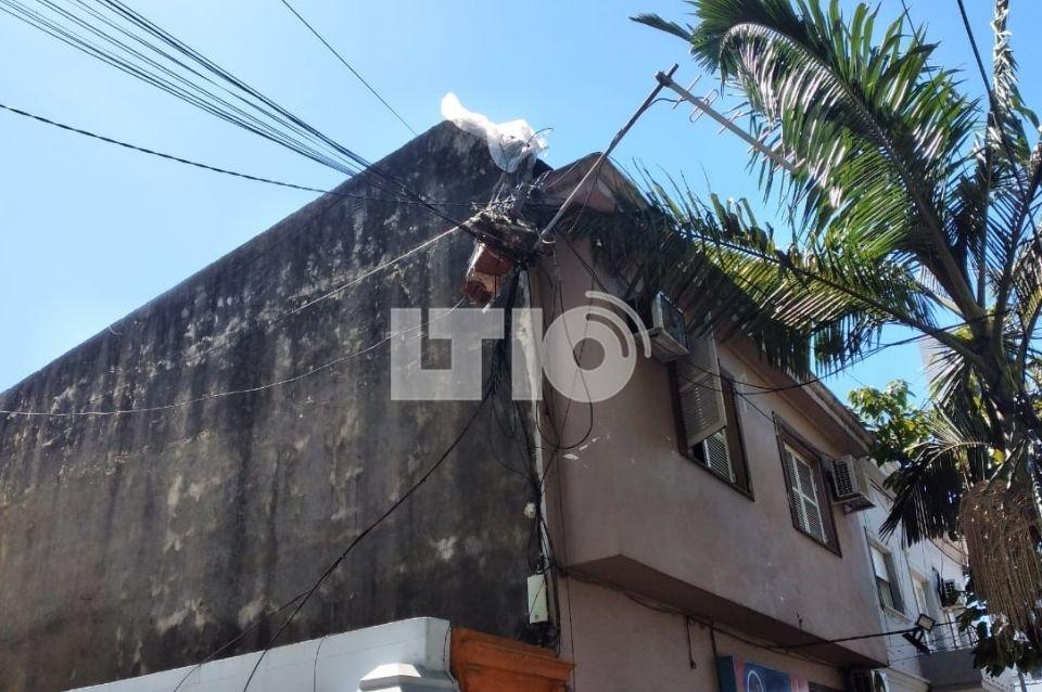 Hace un mes y medio contábamos que un trozo de mampostería se desprendió de una vivienda luego de una tormenta. Se desprendió la rama de un arbol, golpeó el techo y la mayor parte del material desprendido quedó colgando sobre cables.