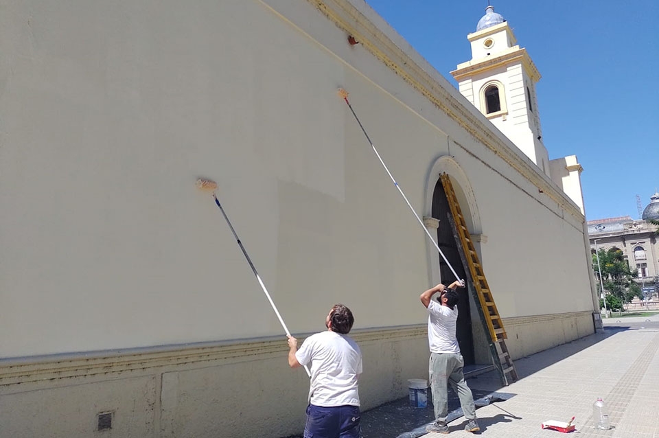 Este sábado por la mañana, operarios realizaron los trabajos de puesta en valor de uno de los edificios históricos de la ciudad.