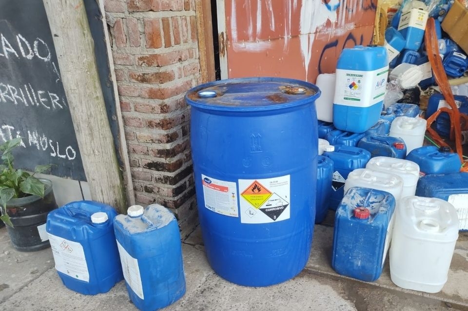 A partir de dicha denuncia, junto con el Cobem, se dirigieron a la dirección donde dieron con un depósito donde había tachos con restos de sustancias químicas, algunas corrosivas y peligrosas, según detalló el secretario de Contol, Guillermo Álvarez.