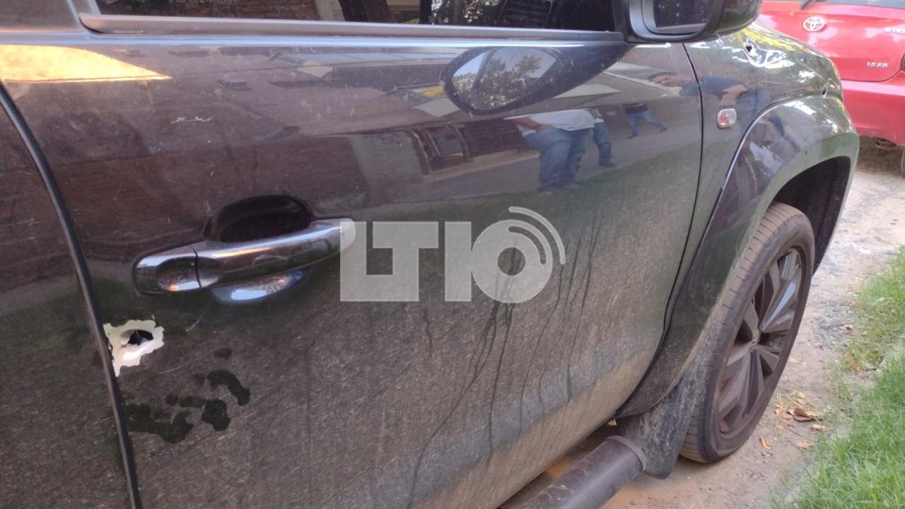 Matías vive en un edificio de las cercanías y su camioneta se encontraba estacionada afuera, y en ella quedaron registros del feroz ataque que dejó como saldo un fallecido y dos heridos.