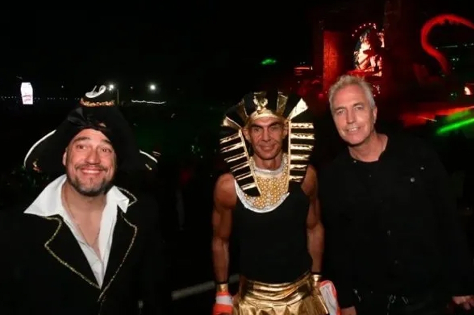 Disfrazado como un rey, el conductor de 51 años compartió algunas situaciones de su tiempo en la masiva fiesta a través de las redes sociales. Desde el momento en que llegó al hotel entrerriano hasta cuando se puso una máscara de Scream para no ser reconocido por el público y bailar cerca del escenario.